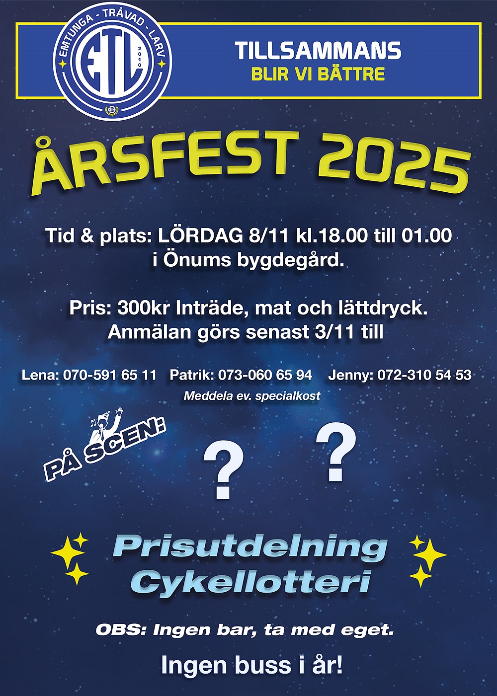 ETL Fotboll är ett samarbete mellan klubbarna IFK Emtunga, Tråvads IF och Larvs FK. Inom ungdomsverksamheten har samarbetet varit starkt sedan 2010. 2020 inleddes samarbete inom damfotbollen och sedan säsongen 2022 har samarbetet utvecklats till att även innefatta herrfotbollen. Läs mer om vad som är på gång i våra verksamheter under respektive flik ovan.